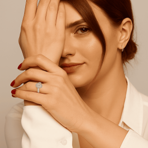 Pillu Jewellery Oval Halo Spark Ring – Silver Finish